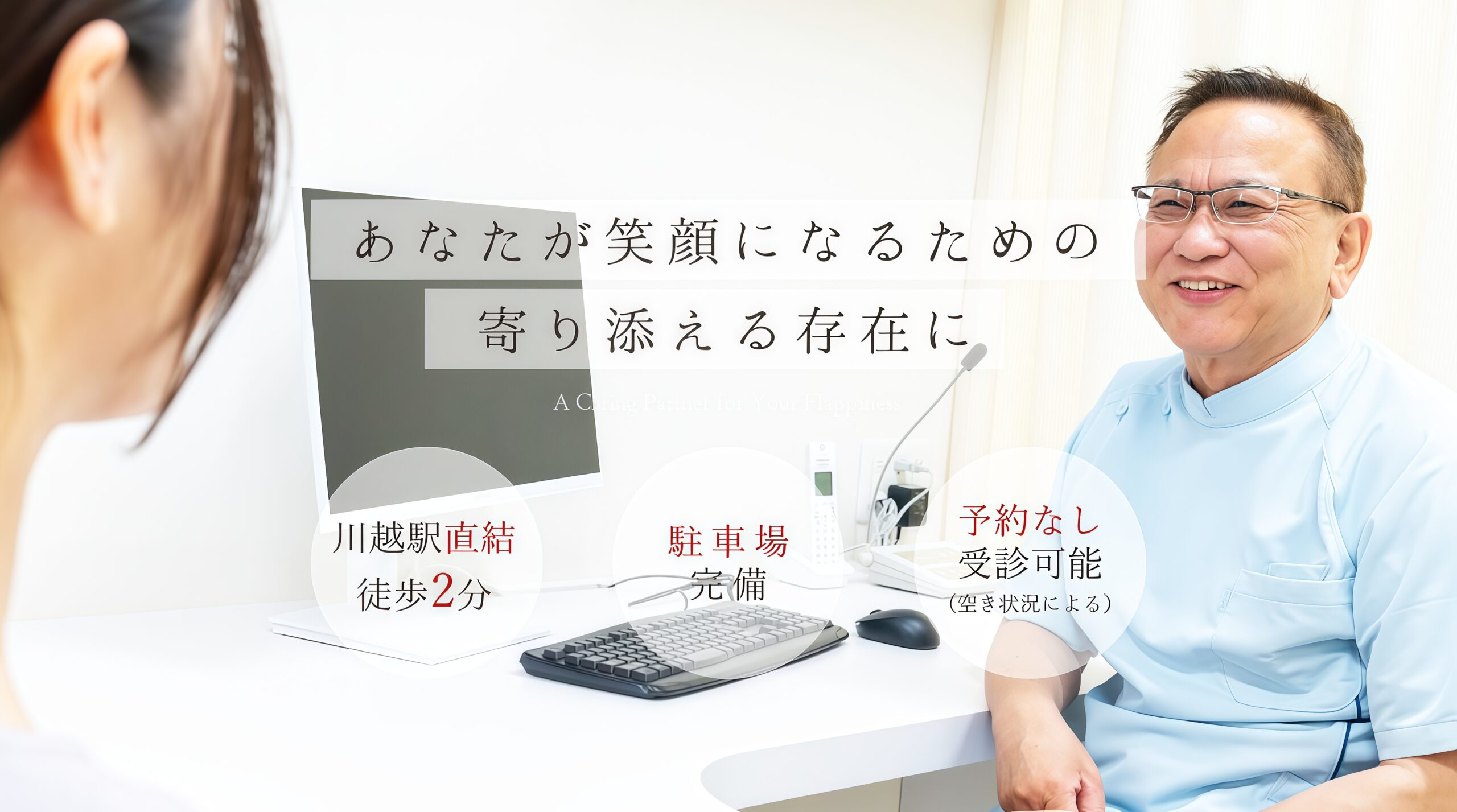 東武東上線・JR東日本川越線「川越駅」西口から直結の場所にあり、通いやすいクリニックです。